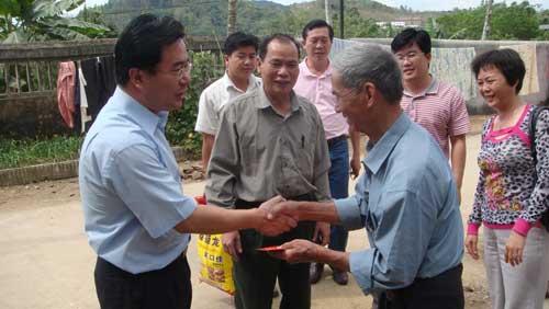每到一戶,王勝都詢問(wèn)他們家庭的生產(chǎn)生活情況及身體狀況,并送上慰問(wèn)金和慰問(wèn)品。瓊中和屯昌縣政府官員和當(dāng)?shù)赝馐聝S務(wù)辦負(fù)責(zé)人陪同慰問(wèn)。