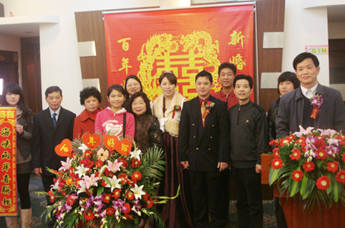 臺灣美女嫁給了云和小伙,締造了兩岸聯(lián)姻佳話,也是海峽兩岸形勢順勢發(fā)展的良好見證;槎Y上,親朋好友都為多了一位臺灣媳婦而感到異常高興,并為兩位新人送上了深深的祝福,禮儀小姐還特意送上了一幅對聯(lián):“炎黃兒女本同根,海峽兩岸喜聯(lián)姻”。
