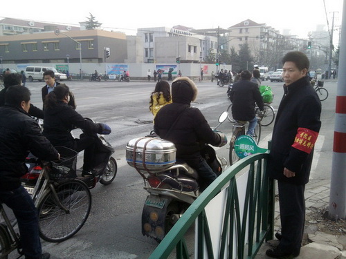 大家利用上班前的一小時(shí)時(shí)間,在道路情況較繁忙的路口協(xié)助交警維持交通秩序,以緩解早高峰的道路擁堵情況。