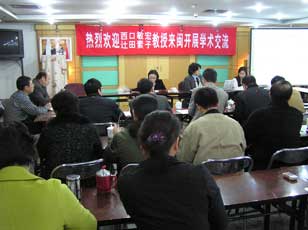 交流會上,首先由西口敏宏教授做《超越世界的社會網絡和中國溫州的巨變》的報告,以溫州巨變?yōu)槔龑σ?guī)則網絡與小世界網絡進行了詳細的講解與闡述,并對如何利用小世界網絡研究當前的移民問題做了探討。辻田教授介紹日本的中國福建省勞動移民情況(以福清為例),通過一系列詳實的數據顯示了旅日閩僑的一些基本狀況,并提到,當前日本老齡化嚴重,如何接受外來勞動力的問題在日本已普受關注。