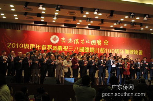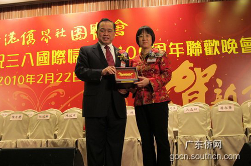 中新網(wǎng)2月26日電 據(jù)廣東僑網(wǎng)消息,2月22日晚,香港龍堡國際賓館冠蓋云集,群賢匯聚。香港僑界社團(tuán)聯(lián)會在此隆重舉行2010庚寅年春茗暨慶祝三八國際婦女節(jié)100周年聯(lián)歡晚會。廣東省僑辦副主任黎靜出席此次活動,并向該會贈送禮品。