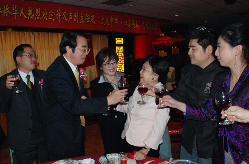 中新網(wǎng)3月4日電 據(jù)美國(guó)《芝加哥華語論壇》報(bào)道,當(dāng)?shù)貢r(shí)間3月3日晚,大芝加哥僑界在南華埠舉辦盛大宴會(huì),熱烈歡迎由國(guó)務(wù)院僑辦副主任許又聲率領(lǐng)的“文化中國(guó)•四海同春”藝術(shù)團(tuán)。