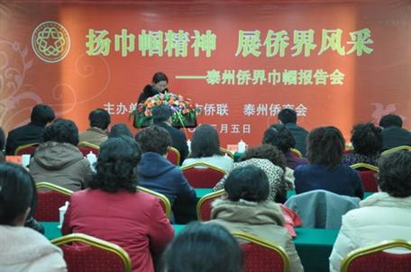 泰州市僑聯(lián)主席顧永伯主持報(bào)告會(huì),市僑商會(huì)會(huì)長(zhǎng)曾憲相致辭,全市歸僑僑眷、留學(xué)生眷屬、僑商等共60多名女代表參加了報(bào)告會(huì)。