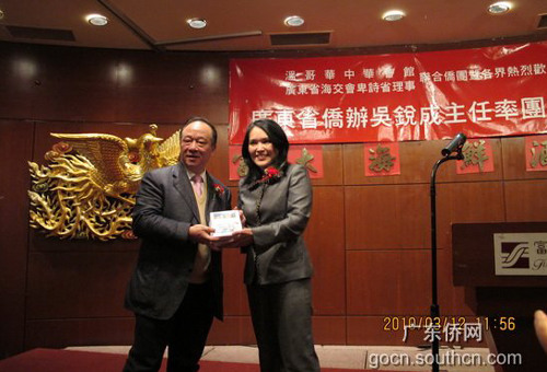 宴會上,中華會館等主要社團的負責人、海外理事代表紛紛做了熱情洋溢的歡迎辭,對廣東省僑辦主任吳銳成一行務實、深入、高效、不辭勞苦的工作表示由衷的欽佩和贊賞。吳銳成在發(fā)言中感謝僑胞們對訪問團的熱情接待和大力支持;向僑胞們詳細介紹了這次訪問的目的,一是向僑胞們拜年,二是報告中國特別是廣東的社會經(jīng)濟發(fā)展情況,三是感謝僑胞們對中國以及廣東發(fā)展所作的貢獻,四是聽取僑胞的意見;再次表示今后廣東省僑辦要在關注華僑華人生存發(fā)展、維護華僑華人合法權益、支持社團的革新與發(fā)展、支持華僑華人融入主流社會、支持華社開展華文教育、傳承中華文化等方面做更多的工作。吳銳成務實為僑、熱情洋溢的精彩發(fā)言得到了共鳴,贏得了陣陣掌聲。