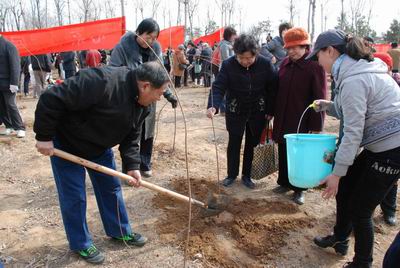 在青草發(fā)芽,枝條吐綠的大自然中,大家懷著愉悅的心情種下一棵棵纖細的樹苗,同時也播種上了一份希望和美好的祝愿。參加活動的歸僑僑眷雖然年事已高,但大家熱情高漲,干勁絲毫不遜于年輕人,你挖坑,我栽樹,他澆水,干的熱火朝天。
