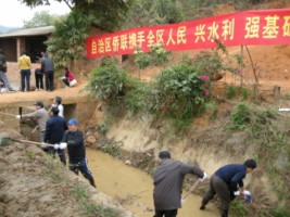 這次冬修水利勞動,是廣西壯族自治區(qū)僑聯(lián)積極響應(yīng)廣西壯族自治區(qū)黨委、自治區(qū)人民政府號召的一次主題實踐活動。當日,一到勞動現(xiàn)場,廣西僑聯(lián)主席韋干身先士卒,帶頭跳入2米深的水渠里,帶領(lǐng)大家迅速投入到勞動中去。工地上,廣西僑聯(lián)會旗和“自治區(qū)僑聯(lián)攜手全區(qū)人民興水利,強基礎(chǔ),惠民生”橫幅迎風飄揚,大家情緒高漲,干勁十足,有的鏟淤泥、搬石塊,有的鋤雜草、修整渠面……,有人身上濺滿了泥漿也全然不顧。