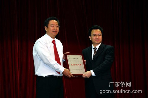 隨后,廣東省副省長(zhǎng)萬(wàn)慶良給盧智俊、朱勁松、譚文、姜小波、伍懿聰、何正宇、胡勝發(fā)、姬尚義、鄒勝龍、王偉東、楊淑偉等11位獲得國(guó)務(wù)院僑辦評(píng)選表彰的“第二屆百名華僑華人專業(yè)人士杰出創(chuàng)業(yè)獎(jiǎng)”的杰出創(chuàng)業(yè)人士頒獎(jiǎng)!敖艹鰟(chuàng)業(yè)獎(jiǎng)”是國(guó)務(wù)院僑辦為表彰在華創(chuàng)業(yè)發(fā)展的優(yōu)秀華僑華人專業(yè)人士,促進(jìn)海外人才回國(guó)創(chuàng)業(yè)創(chuàng)新,進(jìn)一步激發(fā)海外僑胞參與國(guó)家建設(shè)的積極性,從2005年起在全國(guó)僑務(wù)系統(tǒng)開(kāi)展的評(píng)選表彰活動(dòng)。廣東省的入選率在全國(guó)各省市排名中位居榜首。