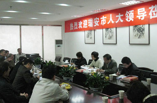座談會(huì)上,瑞安市僑聯(lián)主席盧秀英向調(diào)研組介紹了市僑聯(lián)基本情況,并就近幾年市僑聯(lián)圍繞中心工作如何創(chuàng)新服務(wù)手段、豐富服務(wù)載體、搭建服務(wù)平臺(tái)、健全維權(quán)機(jī)制、加強(qiáng)自身建設(shè)以及2010年的工作思路作了匯報(bào),同時(shí)還提出了僑聯(lián)工作中遇到的一些困難和建議。與會(huì)人員就如何引資引智、為留學(xué)人員回國(guó)創(chuàng)業(yè)提供更好服務(wù)環(huán)境、更好維護(hù)歸僑僑眷合法權(quán)益等問(wèn)題提出了意見和建議。