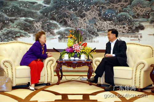 4月18日上午,中共中央政治局委員、廣東省委書記汪洋會見了陳香梅一行。廣東省政府副省長、新任廣州市市長萬慶良、廣東省僑辦主任吳銳成等參加了會見。