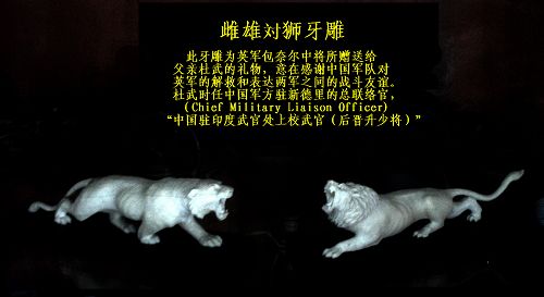 據(jù)悉,此次捐贈(zèng)儀式交接的一對印度象牙精雕的雌雄獅子,是1943年由英軍元帥蒙巴頓的辦公室主任鮑威爾中將贈(zèng)送給杜武將軍的私人禮物,意在感謝中國遠(yuǎn)征軍于1942年4月在緬甸仁安羌解救7000名被日軍包圍幾乎彈盡糧絕的英緬軍官兵和500名西方國家的記者、教師和傳教士。這對牙雕曾輾轉(zhuǎn)于印度,重慶,南京,渥太華,卡爾加里。歷經(jīng)68年的蹉跎歲月,如今由侵華日軍南京大屠殺遇難同胞紀(jì)念館收藏并展出。這對牙雕是中國抗戰(zhàn)史上非常稀有的歷史文物,是中國遠(yuǎn)征軍英勇作戰(zhàn),解救英軍的歷史佐證,具有較高的歷史價(jià)值。(許嘉明)