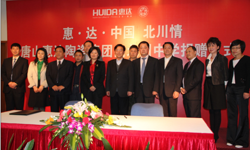 王永樂(lè)代表中國(guó)僑聯(lián)對(duì)惠達(dá)陶瓷(集團(tuán))股份有限公司支持援建北川中學(xué)的義舉表示感謝。他說(shuō),惠達(dá)集團(tuán)是在地震廢墟上開(kāi)始創(chuàng)業(yè)發(fā)展起來(lái)的,經(jīng)歷過(guò)唐山地震的惠達(dá)集團(tuán)對(duì)汶川地震有更為深切的體會(huì);葸_(dá)集團(tuán)在得知中國(guó)僑聯(lián)援建北川中學(xué)的消息后,迅即與中國(guó)僑聯(lián)取得聯(lián)系,向北川中學(xué)捐贈(zèng)所有的潔具產(chǎn)品,并以企業(yè)的成本價(jià)向?qū)W校提供裝修所用的優(yōu)質(zhì)瓷磚,正是有了像惠達(dá)集團(tuán)這樣有社會(huì)責(zé)任感的企業(yè)的大力支持,中國(guó)僑聯(lián)援建北川中學(xué)的項(xiàng)目才能取得今天的成績(jī)。