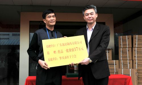 廣東逸舒制藥有限公司董事長黃慶文出差在外,當他接到市僑聯(lián)的倡議后,第一時間表達了向玉樹災(zāi)區(qū)捐款捐物的意愿。他急災(zāi)區(qū)群眾之所急,立即組織企業(yè)員工加班加點,加量生產(chǎn)大批災(zāi)區(qū)急需的抗生素等藥品,并特地委托公司總經(jīng)理黃慶雄參加捐贈儀式捐贈藥品。儀式上,肇慶市僑聯(lián)主席黃志堅向廣東逸舒制藥有限公司及其全體員工對積極參與捐贈活動表示衷心的感謝;他指出,災(zāi)害無情,人間有愛,我們雖遠離玉樹,但與災(zāi)區(qū)人民感同身受,此刻奉獻一份愛心,盡一份綿薄之力是我們情系災(zāi)區(qū)最好的表達方式。隨后,黃慶雄總經(jīng)理代表公司把藥品和善款親自交到市紅十字會主任徐永飛手中,為感謝廣東逸舒制藥有限公司的善舉,市紅十字會也回贈了“紅十字愛心單位”牌匾。