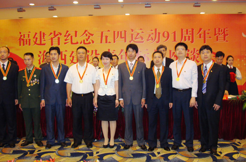 中新網(wǎng)5月6日電 據(jù)思明區(qū)僑聯(lián)消息,5月4日上午,在福建省紀(jì)念五四運(yùn)動(dòng)91周年暨海西建設(shè)青年標(biāo)兵座談會(huì)上,福建省廈門市思明區(qū)僑聯(lián)青委會(huì)會(huì)長、廈門鷺達(dá)眼鏡有限公司董事長、高級經(jīng)濟(jì)師張和輝榮獲由中共福建省委組織部、福建省公務(wù)員局(福建省人力資源開發(fā)辦公室)、共青團(tuán)福建省委聯(lián)合頒發(fā)的第七屆“福建青年五四獎(jiǎng)?wù)隆薄?table border=0 cellspacing=0 cellpadding=0 align=left>