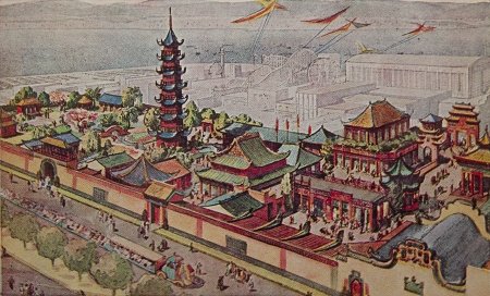 根據(jù)有關(guān)資料,“中國村”入口大門是一座巨大的牌坊,上面書寫著“華商展覽場”幾個大字!爸袊濉眱(nèi)設(shè)有兩個酒家、兩座戲院、一座神廟和一座七層高的佛塔。“佛塔是中國村內(nèi)最高建筑。”喬文安介紹,“中國村”內(nèi)還建了一個陳列館和一二十家商店,分別展出中國的各類民間工藝品、瓷器、茶葉,還有少量具備科技含量的產(chǎn)品。