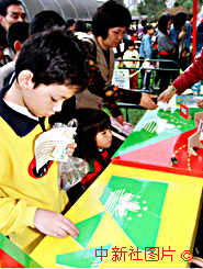 一名兒童在"喜迎澳門回歸,共創(chuàng)美好明天"園游會上認(rèn)真地拼裝澳門特區(qū)區(qū)旗圖案。澳門為紀(jì)念澳門基本法頒布六周年,于二十八日開始舉行系列活動,以增強(qiáng)人們的回歸意識。 |