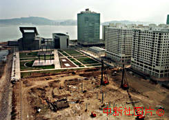 中葡雙方就澳門政權(quán)交接儀式的會場選址問題達(dá)成共識,會場將是建在澳門文化中心與東方文華店之間的臨時場館。圖為場地現(xiàn)狀。 |