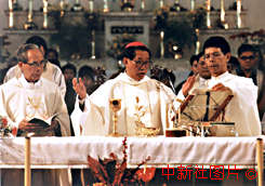 圖片說明: 澳門教區(qū)大主教林家駿正在主持彌撒,林家駿是澳門教區(qū)成立四百年來的第一位華人主教。 |