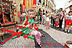 澳門(mén)三十日舉行哪吒出游,以紀(jì)念哪吒太子誕,這是中斷三十三年的哪吒出游活動(dòng)首度恢復(fù)。據(jù)主辦者介紹,此舉是為澳門(mén)回歸年祈福平安吉祥。