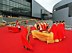 澳門文化中心揭幕典禮上正在舉行宗教祈福儀式。該文化中心座落在澳門新口岸填海區(qū)海邊,其建筑造型設計新縪,將成為澳門城市的一個標志。 |