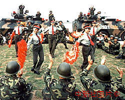 解放軍駐澳部隊(duì)演出節(jié)目 作者:駱飛 解放軍駐澳部隊(duì)官兵中不乏藝術(shù)人才,在緊張的訓(xùn)練之余自娛自樂。 |