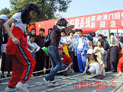 澳門珠海共迎回歸 作者:王麗南 珠海圓明新圓二十日舉行"珠澳攜手迎回歸"萬眾游園活動,二萬余人參加文藝表演、游戲知識競賽等活動。 |