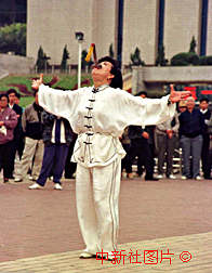吞劍表演 作者:劉可耕 多次出訪世界各地的"女神劍"陳建華日前在福州華武功夫指導(dǎo)中心、福州青少年武術(shù)培訓(xùn)中心等單位舉辦的迎澳門回歸武術(shù)表演活動中表演"特技吞劍"絕活。 |