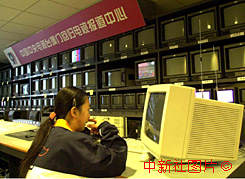 中國中央電視臺澳門回歸電視報導(dǎo)中心 設(shè)在澳門政權(quán)交接大典新聞中心內(nèi)的中國中央電視臺澳門回歸電視報導(dǎo)中心播出室已準備就緒。中新社傳真 毛建軍 攝 |