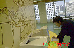 澳門回歸前夕,新聞中心展開新聞大戰(zhàn) 澳門回歸前夕,新聞中心展開新聞大戰(zhàn),香港記者在世界地圖前發(fā)稿。中新社傳真 王瑤攝 |