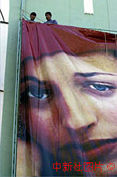 澳門回歸充滿商機(jī),一家國(guó)際時(shí)裝連鎖店在鬧市高樓上掛起巨幅人像吸引顧客。 中新社數(shù)碼傳真 賈國(guó)榮 攝 |