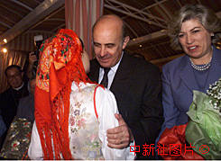 中新社傳真 宗金柱攝 澳門總督韋奇立十五日在官邸舉行晚宴與神職人員辭行,一位表演鄉(xiāng)村音樂的演員上前獻(xiàn)花。 |