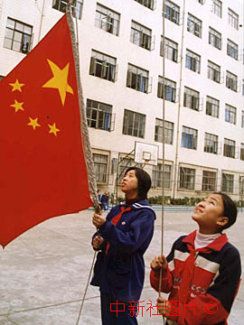 作者:王張雄 上海東風(fēng)中學(xué)虞維詩(shī)(右)是澳門籍學(xué)生,在澳門回歸前的這一個(gè)星期中,學(xué)校特地將每天清晨升國(guó)旗的任務(wù)交給她。圖為虞維詩(shī)17日與同學(xué)一起升國(guó)旗的情景。