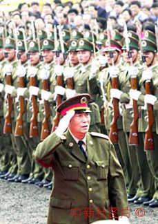 中國人民解放軍軍委副主席張萬年19日在珠海檢閱駐澳部隊。中新社數(shù)碼傳真 王瑤 攝 |