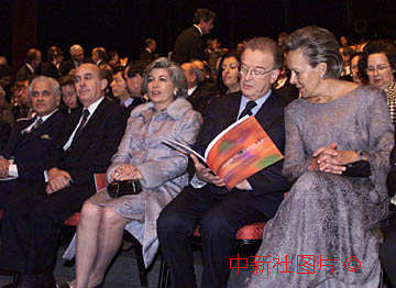 葡萄牙總統(tǒng)沈拜奧夫婦和澳門總督韋奇立夫婦,十九日晚一起觀看在澳門政權(quán)交接之夜特別舉辦的告別文藝表演。中新社數(shù)碼傳真 宗金柱攝 |