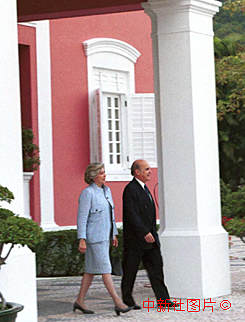 澳督韋奇立將軍和夫人十九日下午四時三十五分離開居住了八年零八個月的竹仔室官邸,在澳門政權(quán)交接儀式之后于二十日子夜將飛離澳門。中新社傳真 朱大強攝 |