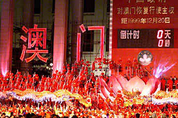 一九九九年十二月二十日零點(diǎn)零分,北京天安門廣場澳門回歸倒計(jì)時(shí)牌前一片歡騰。(本社記者天安門廣場零點(diǎn)現(xiàn)場數(shù)碼傳真)作者:滿會(huì)喬 |