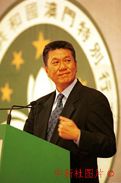 澳門(mén)特區(qū)行政長(zhǎng)官何厚鏵二十日舉行履任后首次記者會(huì),回答中外記者提問(wèn)。中新社傳真 李剛攝 |