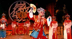 京劇的前身--徽劇 徽劇,淵源于明代的"徽池雅調(diào)"。明朝嘉靖年間,江西弋陽腔流傳到安徽青陽,貴池一帶,與當(dāng)?shù)孛癖娤猜剺芬姷拿耖g曲調(diào)相結(jié)合,創(chuàng)造了新腔,形成了具有當(dāng)?shù)氐胤教厣那嚓柷唬磺嚓柷挥质艿矫耖g山歌小調(diào)和昆曲的影響,長期發(fā)展而形成今天的徽劇。 清朝乾隆年間,徽劇名藝人高朗亭,郝天壽等,把徽劇帶到揚(yáng)州演出。當(dāng)時揚(yáng)州是全國文化中心之一,是"花部"的集中地,但很快即被藝術(shù)精湛的徽劇壓倒。乾隆五十五年,高朗亭又帶到了北京,受到了北京觀眾的歡迎。接著,又引起"四喜","春臺","和春"等徽班進(jìn)京。 徽劇進(jìn)京不久,漢劇也進(jìn)京,徽劇又從漢劇中吸收了西皮,進(jìn)一步豐富,發(fā)展了自己的聲腔。從此,徽劇不僅闖進(jìn)了皇宮,振動了京城,而且廣泛流傳,影響了全國.它在北方扎下根子,逐漸吸收了北方的京腔,其高腔與北方語言結(jié)合起來,發(fā)展成為京劇。它在南方的戲曲影響也十分深遠(yuǎn),江西的贛劇、四川的川劇、廣東的粵劇、廣西的桂劇、云南的滇劇,都受到徽劇不同程度的影響。 對徽劇表演藝術(shù)有著突出貢獻(xiàn)的杰出代表是老藝人程長庚。程長庚名椿,字玉珊,安徽潛山人。他把徽音、京音、楚音兼收并用,脫俗創(chuàng)新,卓然成家,對徽劇來說,他起了承前作用,對京戲來說,他起了起后作用,因此,他成為京劇的開山祖師。 徽劇的表演藝術(shù),豐富而多采。它講究平臺與高臺武功,講究身段、亮相的雕塑美,講究人物形象的塑造和畫面氣派等。平臺與高臺武功在徽劇里最為突出,平臺如"獨腳單踢"、"叉腿單踢"、"刀門"、"飛叉"等都異常驚險,至于高臺武工,更為險要,一般演員要翻三張桌子,有的要翻七張桌子。身段、亮相,在徽戲里很有雕塑藝術(shù)感;談∽⒅丶w表演,必要時眾歌齊舞,顯得氣勢壯偉,場面熱烈。徽劇的劇目很多,據(jù)記載有一千四百零四個,因年代較久,多為手抄本,不少的本子以失傳。解放后,經(jīng)過挖掘整理,富有徽劇特色的代表劇目有:《義虎報》、《巧姻緣》、《齊王點馬》、《水淹七軍》等。