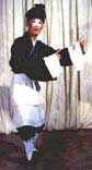 短衣類 一、茶衣:是用藍(lán)布做的裝身的短褶子。除兒童穿用外,更多的是一些酒保、樵夫、漁夫等穿著。茶衣的色彩較單調(diào)。 茶衣的式樣分兩種:一種是,斜領(lǐng)、大襟;別一種是,對(duì)襟。茶衣有的帶水袖,有的不帶水袖。 例如藍(lán)布大袖就是戲曲舞臺(tái)上扮演勞動(dòng)人民或店家、酒保、群眾演員的服裝。穿用人物有《武松打虎》中的酒保、《問(wèn)樵鬧府》中的樵夫、《挑廉戴衣》中的武大郎等。 彩旦褂子是戲曲舞臺(tái)上扮演丑婆、媒婆、巫婆、禁婆等角色穿的服裝。彩旦褂子本是清代漢人的生活服裝,這是中國(guó)服裝史上最不美觀的一種服裝造型。在舞臺(tái)上凡扮演比較丑的婦女形象,都穿這種彩旦褂子。 二、女式的褲子、襖:一般是小戶人家的年輕婦女或是大戶人家的丫環(huán)穿用,偶有大戶人家的、性格活潑、伶俐的姑娘穿用時(shí),下身多數(shù)要罩一條裙子。襖的式樣是:立領(lǐng)、大襟、袖口較肥,不帶水袖。褲、襖的花色很多,因人而異,但有一種用紅布做成的褲、襖較為特殊,這樣的服裝專業(yè)用名是:罪衣、罪褲,是專門給犯罪的人穿的,其式樣與一般褲襖也有所不同:小領(lǐng)、對(duì)襟,腰里還著素白色的罪裙。下面再仔細(xì)介紹一下: 這是戲曲舞臺(tái)上扮演民間少婦、小家閨秀、小姐及丫鬟使女常用的服裝。襖、褲、裙在地方戲中,尤其評(píng)劇使用最多。襖、褲、裙的色彩除了不準(zhǔn)用明黃、杏黃色外,其他任何色彩都可使用,主要以繡花草為主。 穿用人物有《花田八錯(cuò)》中的春蘭和《坐樓殺惜》中的閻惜姣等。 三、緊身衣:是便于武打穿用的一種緊身衣服,分為抱衣抱褲、打衣打褲、侉衣侉褲(快衣快褲)。 抱衣抱褲:戲曲舞臺(tái)上扮演非正式武將、武士的服裝, 老年武士的抱衣褲特點(diǎn)是色調(diào)沉著,不繡彩色圖案。穿用人物有《打漁殺家》中的蕭恩。而且穿香色抱衣的角色以《打漁殺家》中的蕭恩最具代表。 打衣打褲:這是戲曲舞臺(tái)上扮演女武俠、女兵、女將或神話劇中女妖的武打服裝(又稱戰(zhàn)襖戰(zhàn)褲戰(zhàn)裙),是藝術(shù)家王瑤卿(梅蘭芳之師)為《十三妹》專門設(shè)計(jì)的服裝。后為女兵、女將等通用。式樣為:小領(lǐng)、對(duì)襟、緊袖、有繡花。下身穿打褲、腰系戰(zhàn)裙。色彩沒(méi)有嚴(yán)格限制。高質(zhì)量的戰(zhàn)裙、襖為主要演員扮演主要角色穿用,質(zhì)量較差的為女兵所用。 穿用人物有《十三妹》(又稱《能仁寺》)中的女武俠十三妹。由于《十三妹》是一出唱、做并重的重頭戲,所以十三妹的扮相主要穿紅色戰(zhàn)裙、襖、褲與風(fēng)帽、彈囊。 快衣快褲(挎衣挎褲):武丑大部分穿這樣的衣服,武生也有穿的。如俠客、義士為了夜間行走不易暴露目標(biāo)穿挎衣,所以又稱為"夜行衣"。在特殊情況下官方武士也穿用。如《蘆花蕩》中張飛(扮作漁夫,埋伏在江邊,等候劉備回荊州時(shí)即穿挎衣)、"水滸"戲中的武松、石秀等武士也常穿此服裝。挎衣式樣是小領(lǐng)、對(duì)襟、緊袖。一般沒(méi)有繡花。顏色為純黑,只是袖子的底側(cè),胸部的正中,密排著白色的扣絆兒。 四、馬褂:在明代以前的生活服裝資料中,還未發(fā)現(xiàn)有關(guān)馬褂的資料。到了清代,生活服裝中已有馬褂。朝廷中以獎(jiǎng)賞"御賜黃馬褂"為最高榮譽(yù)。但受獎(jiǎng)的功臣們只有當(dāng)國(guó)家舉行大典時(shí)才能穿一次,平時(shí)則要高高供奉在祖宗堂上,以示榮耀。不過(guò),他們可以復(fù)制一件較原物簡(jiǎn)單的黃馬褂,以備公務(wù)需要時(shí)穿用。功勛大臣們違背皇規(guī)或犯錯(cuò)誤時(shí),皇帝還要將黃馬褂收回,以示懲罰。清代的一般文武官員都可以穿馬褂,只是不能用明黃、杏黃兩色。 在戲曲舞臺(tái)上,無(wú)論文官武將都可以穿馬褂,如唐代的薛平貴、宋代的金兀術(shù)以及《打嚴(yán)嵩》中的中軍、衛(wèi)士等都穿馬褂,這雖然與歷史上的生活服裝不相符合,但戲曲服裝自成體系,可不受歷史年代的限制。 舞臺(tái)上馬褂的式樣與解放前的那種長(zhǎng)袍外邊套的馬褂差不多,只是多繡了一些花。它經(jīng)常是套在箭衣外邊,作為一種行路的外罩服裝,也可以作為戰(zhàn)斗時(shí)穿的服裝。 五、彩褲和水衣。是每個(gè)演員必穿的,彩褲有各種顏色。水衣是襯在服裝里的粗布襯衣,因?yàn)閼虻浞b是價(jià)格較為昂貴的一種工藝品,所以里面穿些衣服,盡是減少演員的汗水對(duì)戲裝的污損。